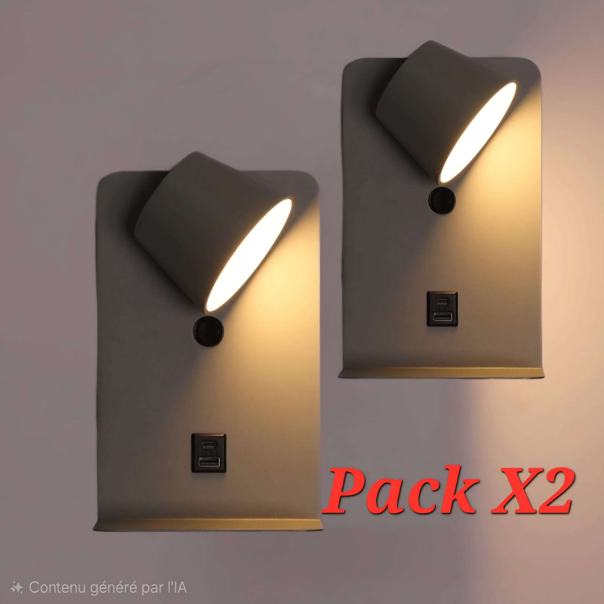 LOT X2 Lampes murales de lecture “BASTOS” : fonctionnalité et connectivité