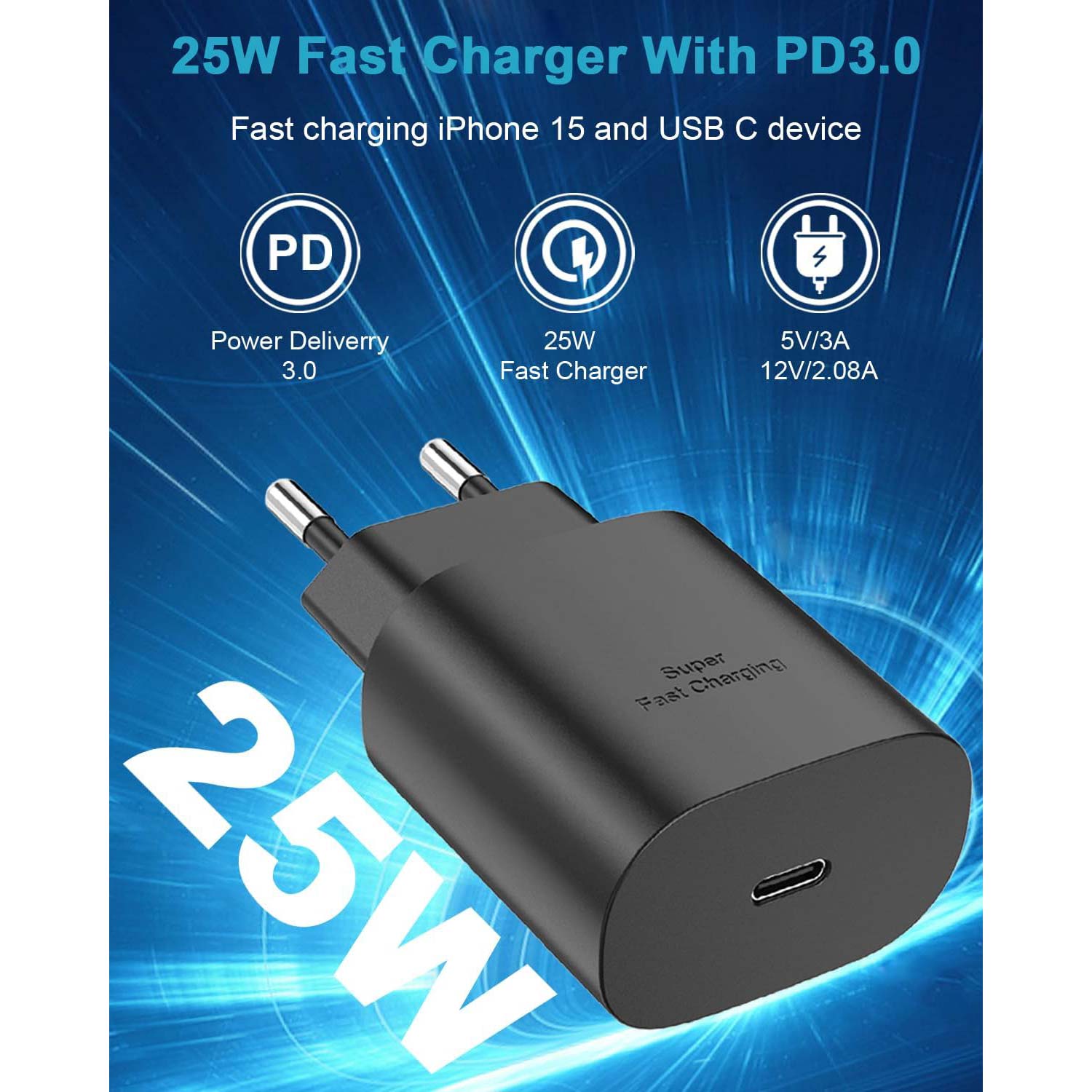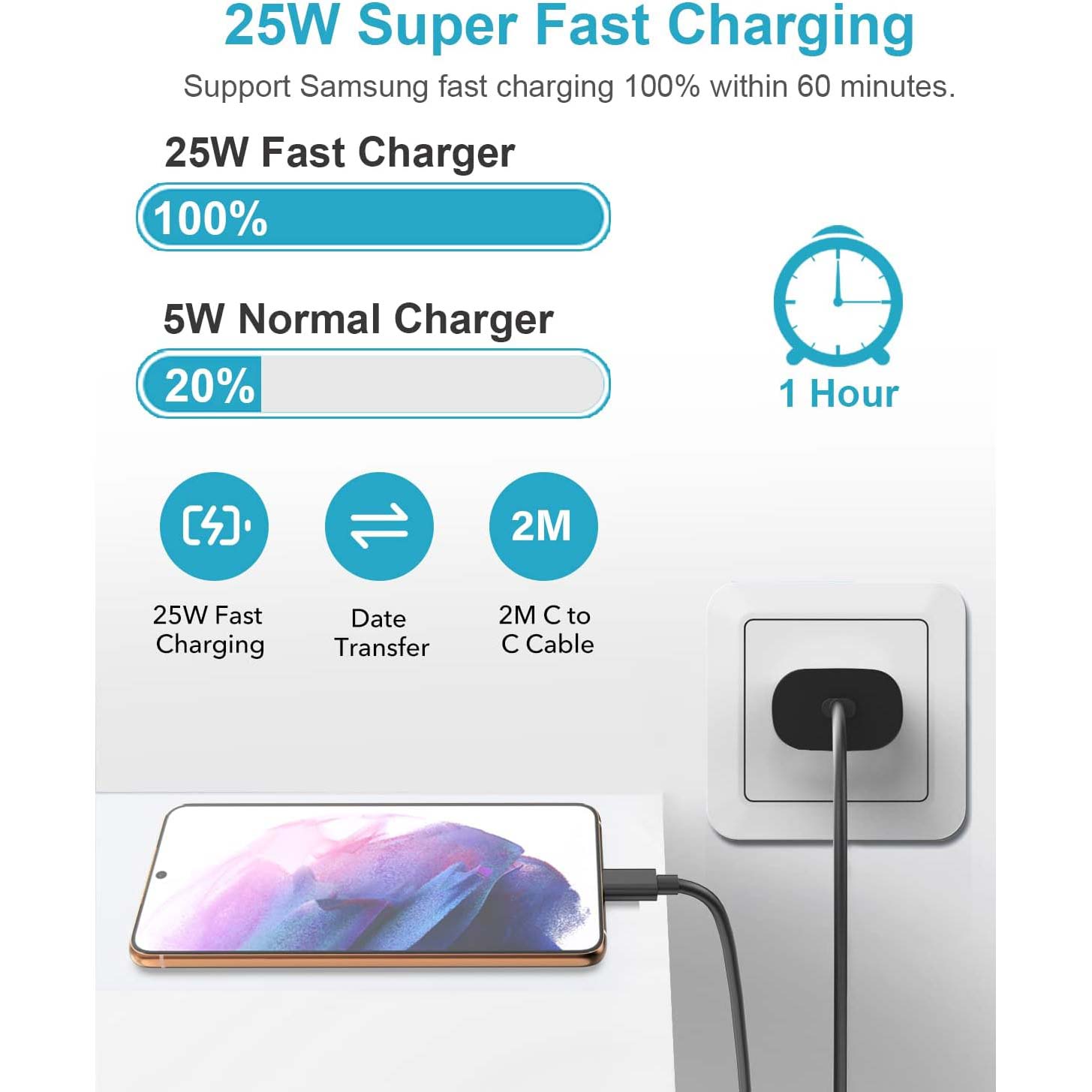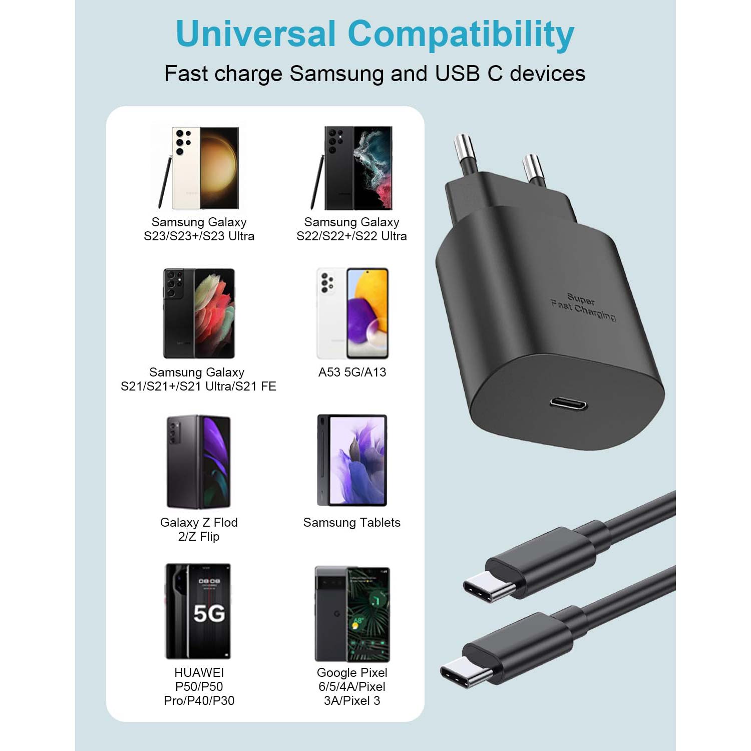 - Chargeur Galaxy Charge Rapide: la puissance de sortie du chargeur USB C est de 25W, est conçu pour Samsung téléphones, remplacement parfait du chargeur Galaxy original. Chargeur USB C rapide avec charge rapide PPS adaptative, support PD 3.0/2.0, courant maximal 3A. Chargeur pour Samsung 25W la vitesse de charge est 2 fois plus vite que le chargeur pour Samsung 15w original, charge le GalaxyS24 de 0% à 50% en 30 minutes, vous faisant gagner encore plus de temps.