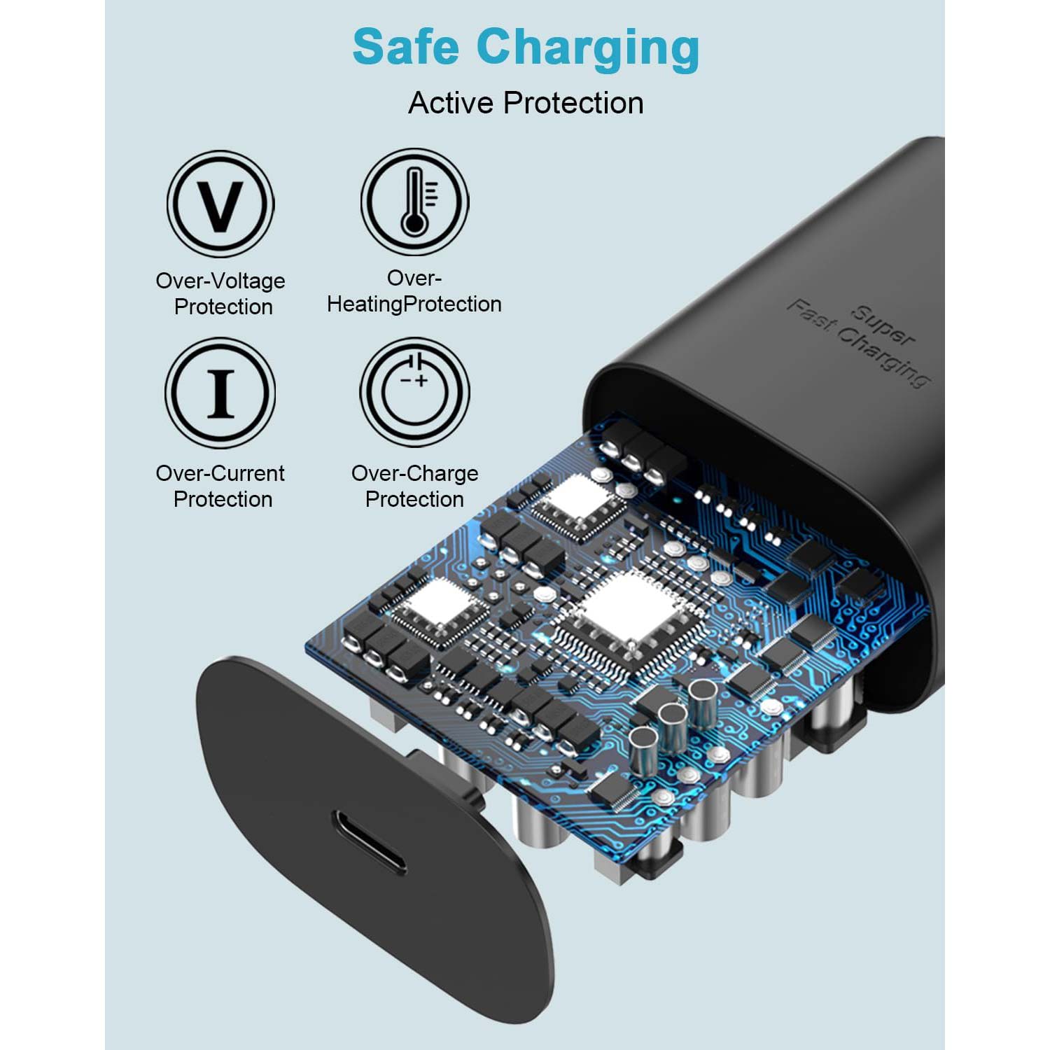 - Chargement Sécurisé: le chargeur Type C possède un certain nombre de protections intégrées contre les courts-circuits, la surchauffe, les courants élevés et la surcharge. Le chargeur téléphone ajuste intelligemment la puissance de sortie du téléphone pour une charge optimale. Une fois que le téléphone a atteint une charge de 100%, le prise murale USB C arrêtera automatiquement la charge lorsque le téléphone atteindra 100% pour assurer la sécurité et la durabilité du téléphone.