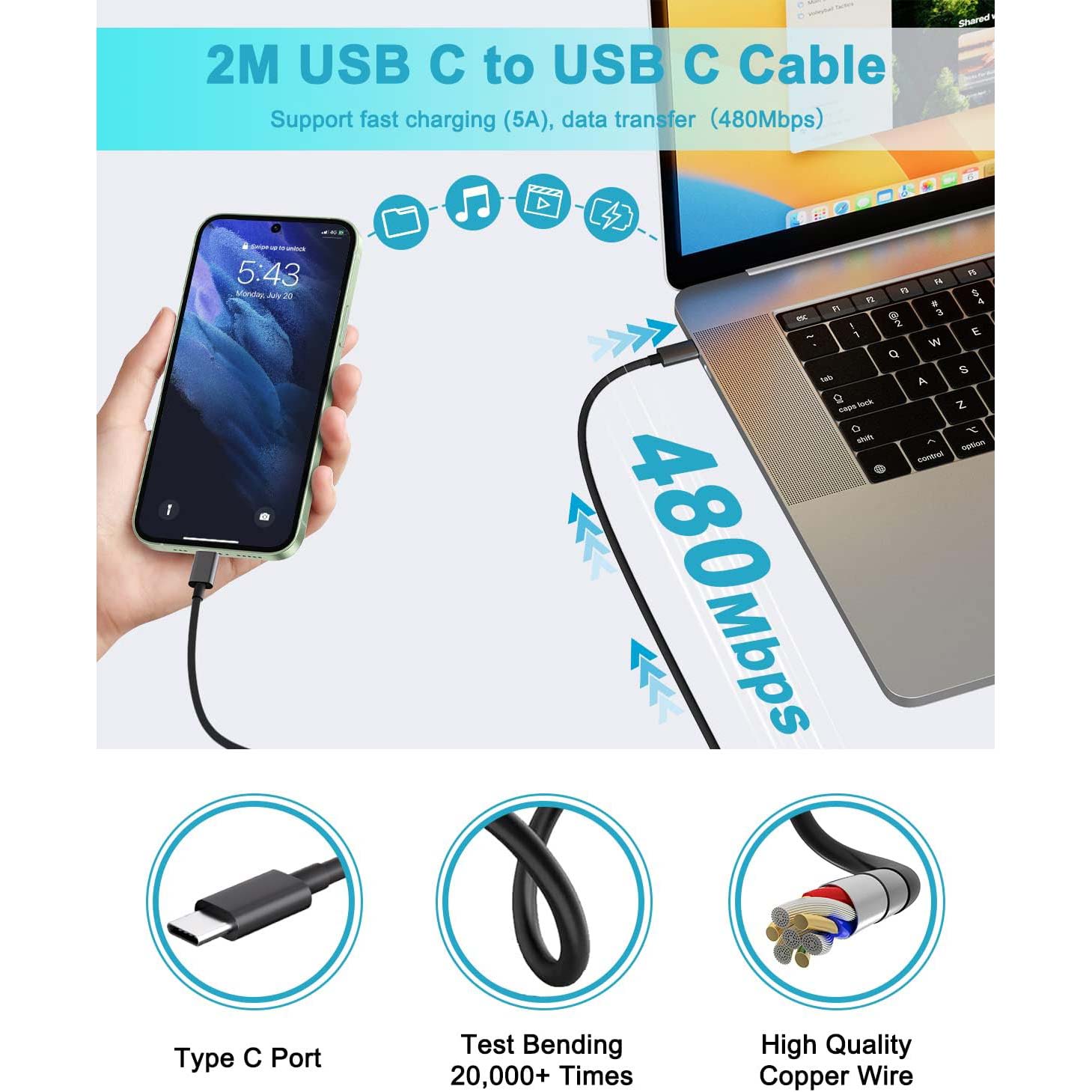 - Cable USB C 2M: Cette prise secteur USB C est livrée avec un câble USB C vers USB C, et tout appareil de Type C à partir de plus grandes distances. Le câble chargeur pour Samsung est composé de plusieurs fils de cuivre de haute qualité qui ont été correctement testés et peuvent résister à plus de 20 000 courbures. Le USB C câble peut également être utilisé entre un téléphone portable et un ordinateur, ce qui permet de charger et de transférer des fichiers simultanément.