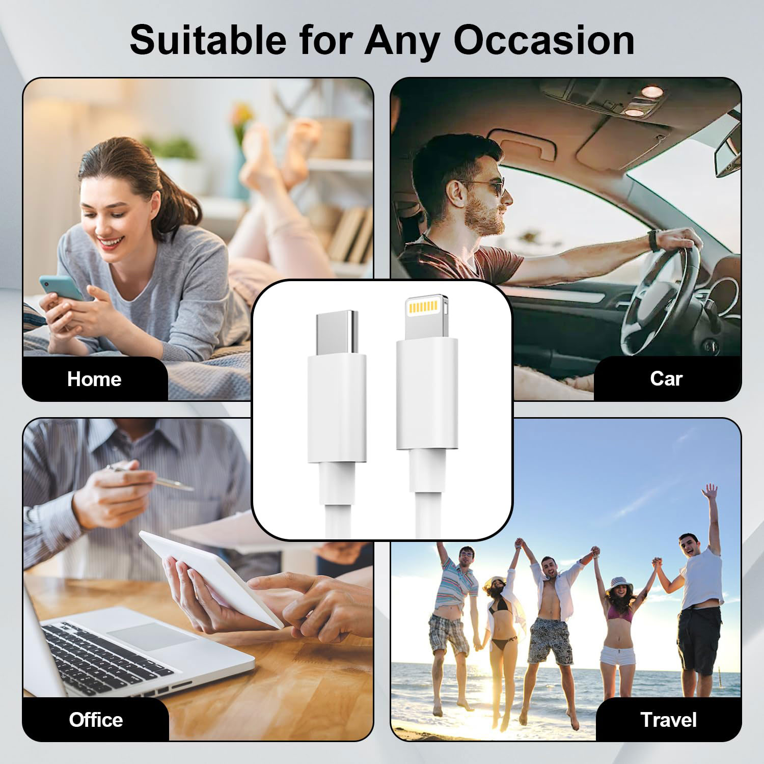 - Câble iPhone USB C Durabilité et Fiabilité: les câble usb c vers lightning fabriqués à partir des derniers matériaux peuvent être pliés à volonté après 20,000 essais de flexion en laboratoire; Le Câble iPhone offre suffisamment de liberté et de commodité pour charger vos appareils où que vous soyez à la maison, au bureau, à l’hôtel ou en voiture