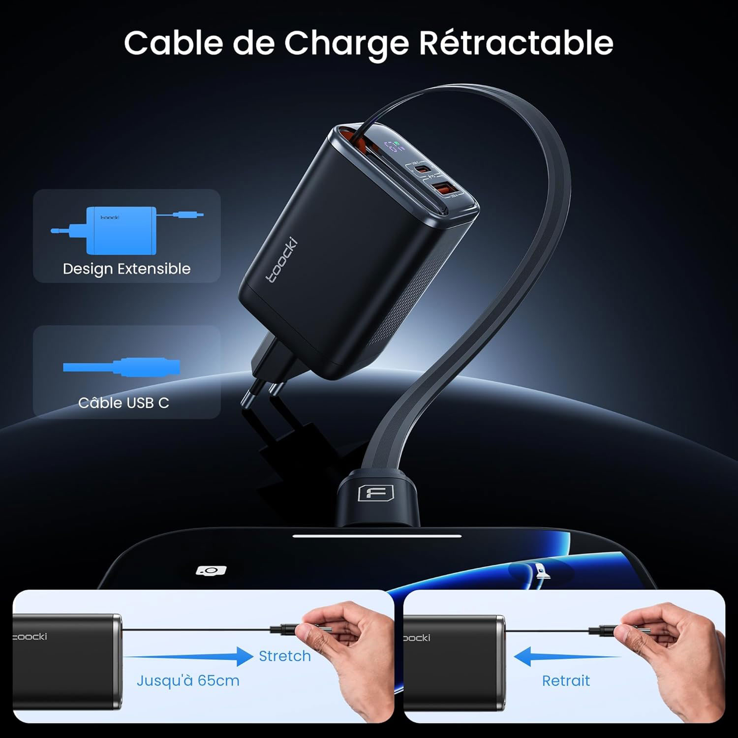 - Large compatibilité: Ce toocki chargeur rapide USB C 67w est compatible avec presque tous les appareils, y compris, mais sans s’y limiter, les tablettes, les ordinateurs portables, les téléphones portables. Compatible avec iPhone 17/17 pro max/16/16 plus/ 16 pro max / 15 pro max / 14/ 13/ 12/ 11pro max / XS max , Samsung Galaxy S24 / S24 + / S23 / S22 / S21 / S20 ultra / note 20 / note 10 / A53, Pixel 7 Pro / 6 / 5 / 4a, Huawei, Xiaomi, MacBook Pro / air 13 pouces 2022 m2, MacBook Air / pro M1, etc.
