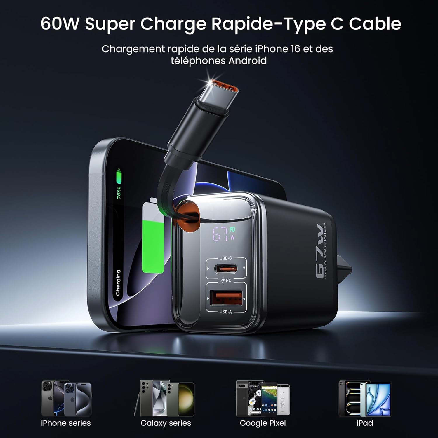 - Cadeau Idéal pour les Fêtes : Avec son design élégant et compact, ses performances de charge ultra-rapide et sa polyvalence, ce chargeur GaN 67W est le cadeau parfait pour Noël et le Boxing Day, alliant praticité et technologie de pointe