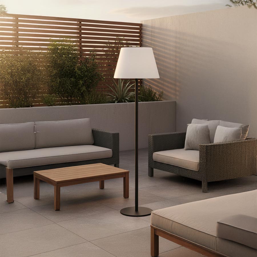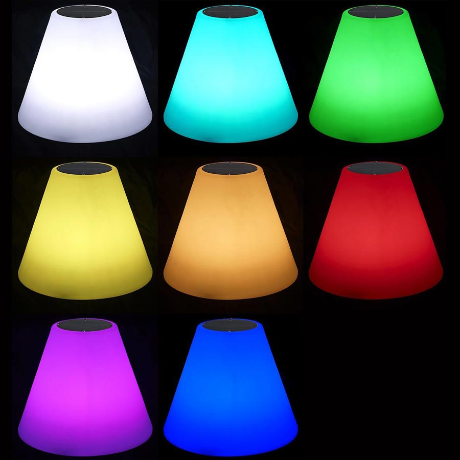 Lot X2 luminaires LED sur pied avec panneau solaire et H.P Bluetooth – LED RGBW réglable – IP44 – 2 H.P Bluetooth 5W – Dimensions : Ø 340 x 1500mm. Possibilité de diffuser la musique sur un ou plusieurs luminaires.