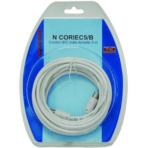 Cordon IEC (9.52 mm) mâle/femelle sous blister Longueur : 5 mètres