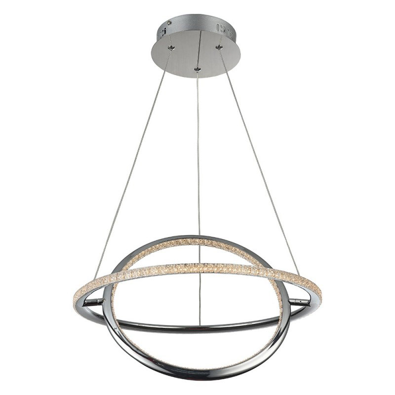 Lampe en suspension QUARZA style nordique 28W avec effet quartz diamant, finition nickel chrome.