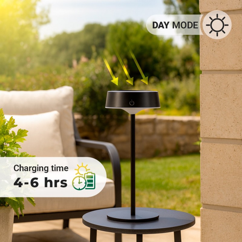 Cette lampe allie style et fonctionnalité pour répondre à tous les besoins d’éclairage intérieur. Son panneau solaire supérieur convertit la lumière naturelle en énergie, ce qui permet une utilisation plus efficace et plus respectueuse de l’environnement.