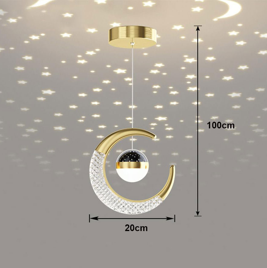 - 🌙 【Lampe suspension Lune et Étoile】 Design moderne et délicat, croissant de lune entouré d’étoiles, crée une atmosphère chaleureuse et féerique, crée un éclairage paisible et romantique pour votre maison.