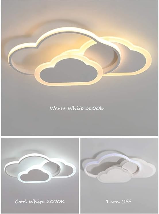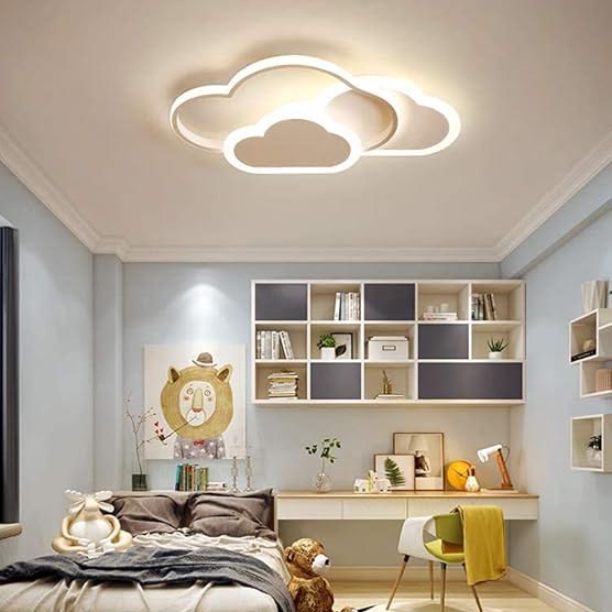 - Plafonnier pour chambre d’enfant : Joli modèle nuage avec diffuseur en acrylique, parfait pour les chambres de bébé et d’enfant.