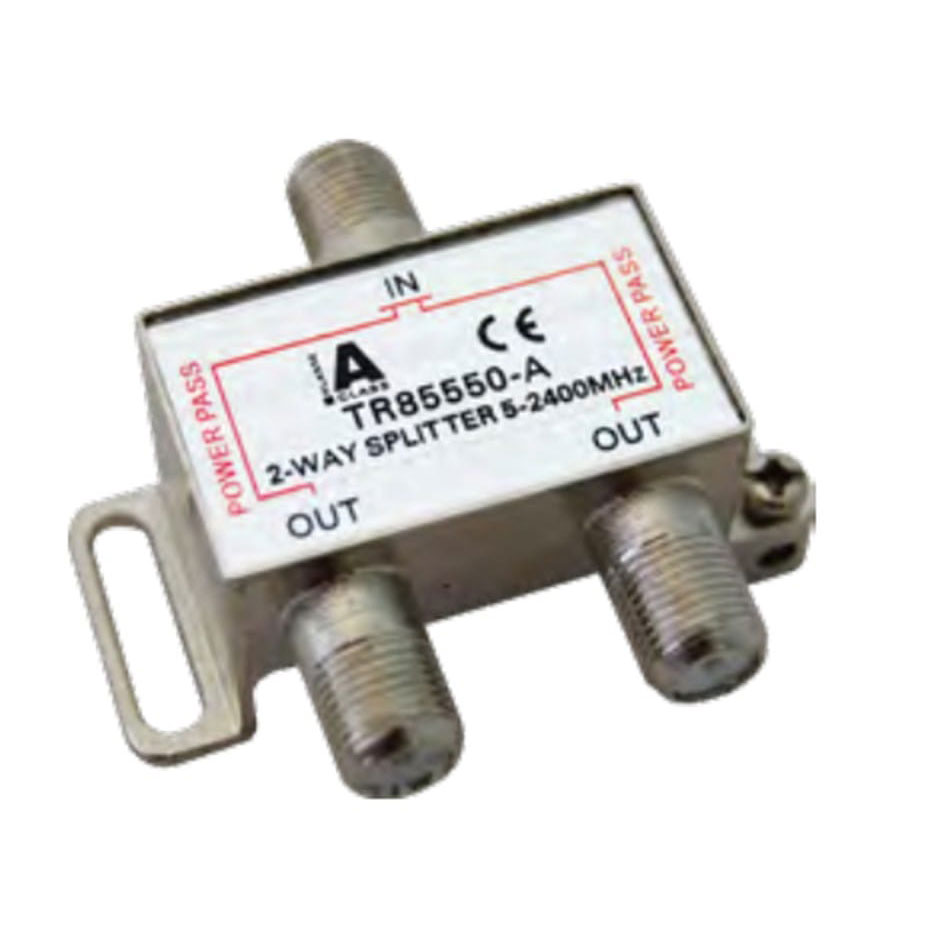 Répartiteur 5 – 2 400 MHz – 2 sorties sous blister Passage Ter : 3.5 dB, Sat : 5.0 dB Passage d’alim. sortie -> entrée avec diodes sur toutes les voies Connectique F
