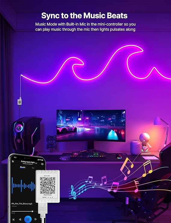 Équipées d’un microphone intégré, les bandes LED réagissent à la musique et créent des effets lumineux en temps réel, pour une expérience immersive et dynamique. Idéal pour les soirées, le gaming ou l’écoute musicale.