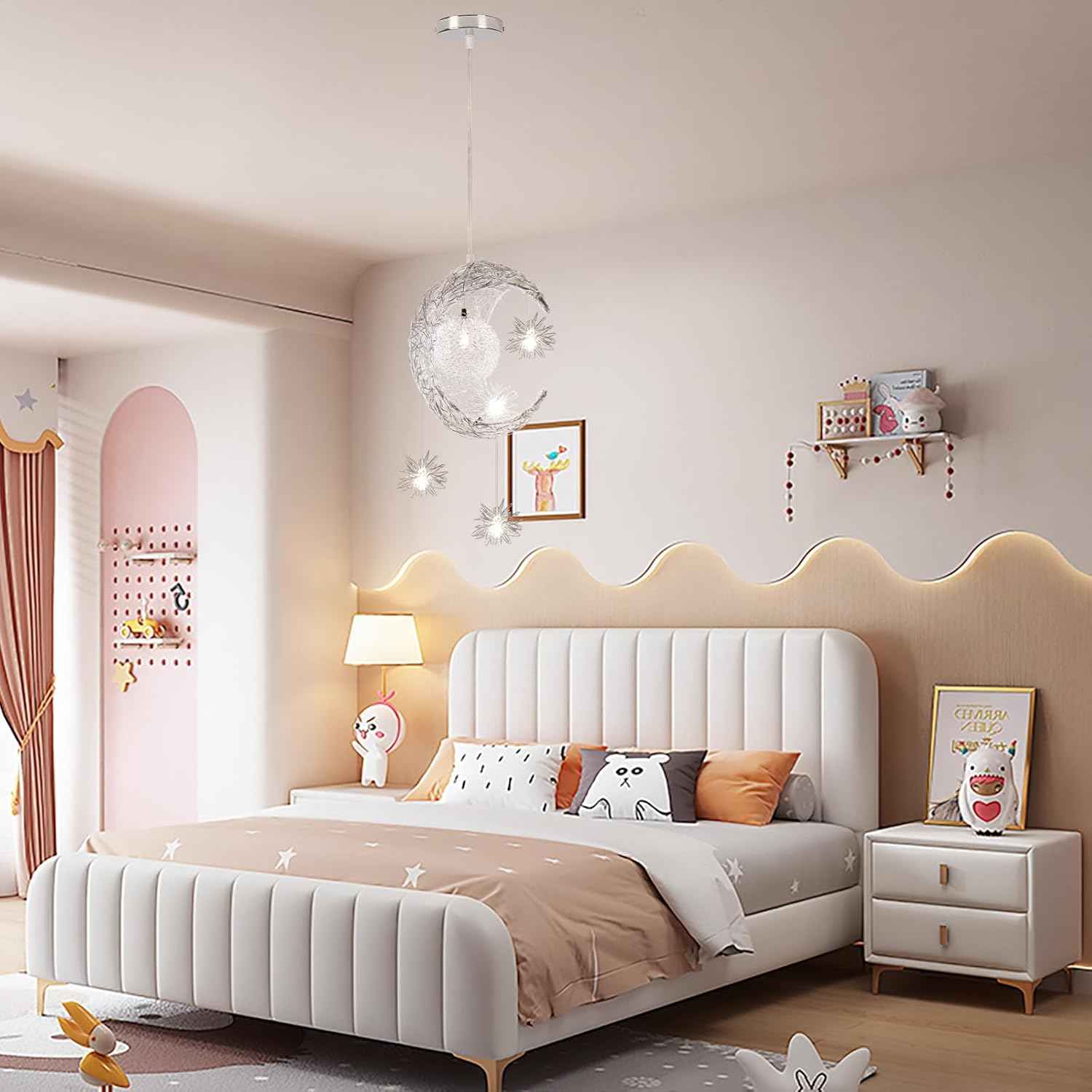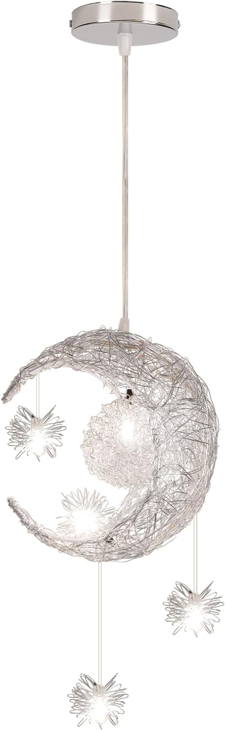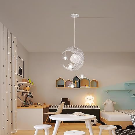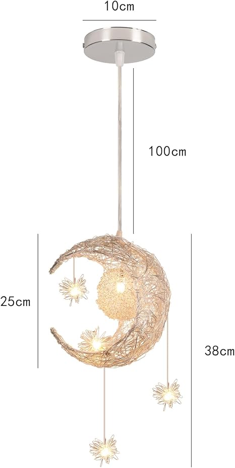 - ✔ Design élégant de l’abat-jour – Cette superbe lampe suspendue est fabriquée en aluminium léger et présente un délicat motif de lune et d’étoiles qui projette des ombres fantastiques et crée une atmosphère fantaisiste.