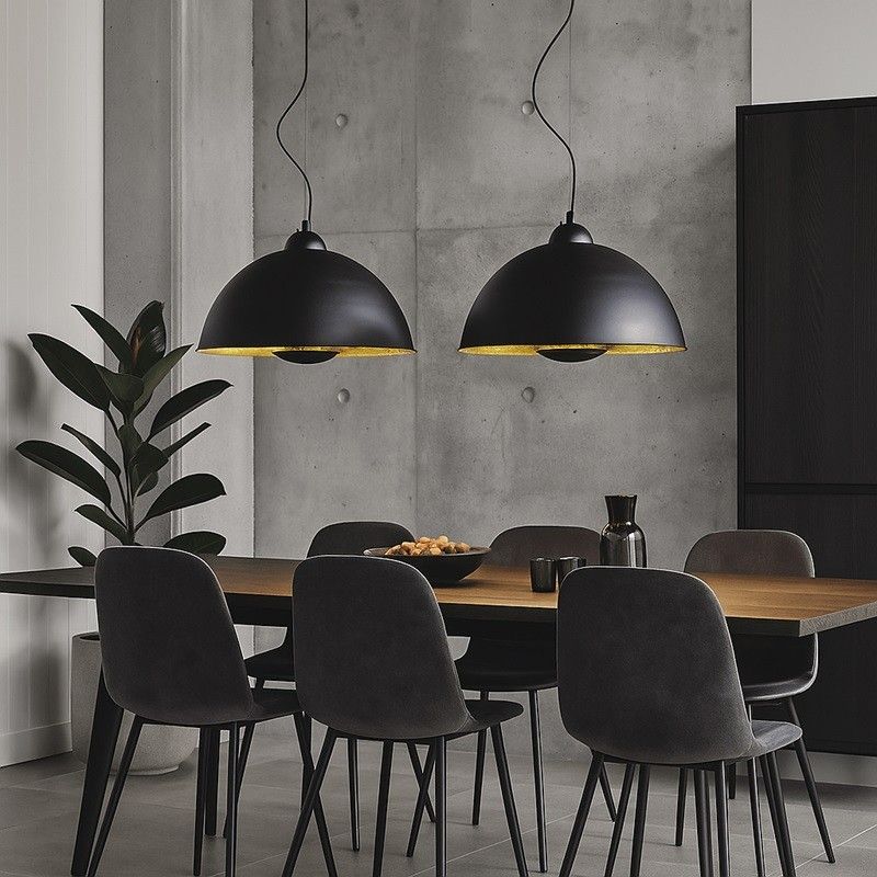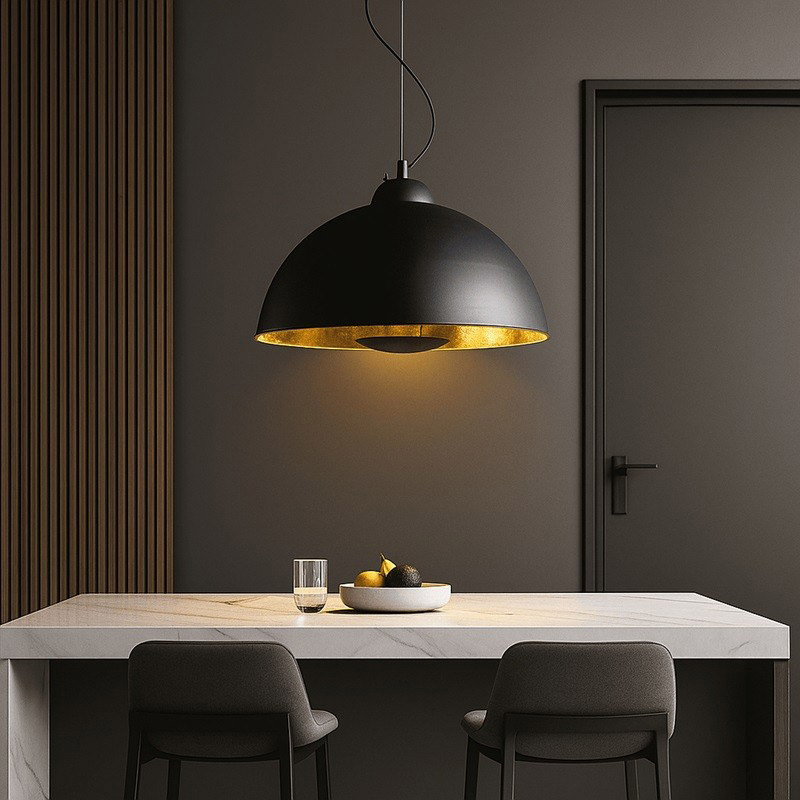 La suspension ORION est un élément clé pour ceux qui souhaitent mettre en valeur leur décoration intérieure avec une touche rétro industrielle. Son extérieur noir vieilli contraste élégamment avec l’intérieur doré, créant une lumière chaude et enveloppante qui transforme n’importe quelle pièce en un espace plein de personnalité.