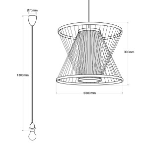 Cette lampe suspendue peut être utilisée avec n’importe quelle ampoule E27 d’une puissance maximale de 60W (non incluse) et elle est disponible avec trois couleurs de câble différentes (blanc, noir et corde naturelle), afin de s’harmoniser avec l’environnement dans lequel elle sera installée.