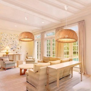 Grâce à son tissage soigné, la lumière se diffuse de manière douce et agréable, mettant en valeur les textures naturelles de l’osier et instaurant une atmosphère détendue et harmonieuse.