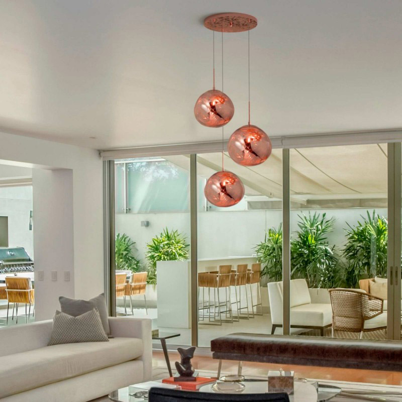 - Design avant-gardiste : Les trois abat-jours en verre, évoquant la fusion de matériaux à l’état liquide, créent une expérience visuelle unique et captivante.