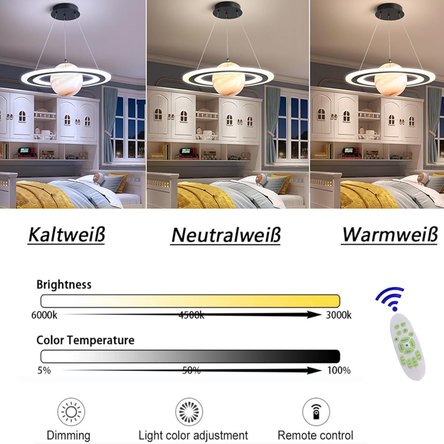 - ★dimmable télécommande LED Lustre: lampe pour enfants, 3 températures de couleur: blanc froid, blanc naturel, blanc chaud (3000k – 6000k), luminosité et couleur de la lumière réglable, mode d’éclairage de nuit. Fonction de mémoire simule la conception du plafonnier avec une excellente fonction de mémoire qui se souviendra des derniers réglages d’éclairage.