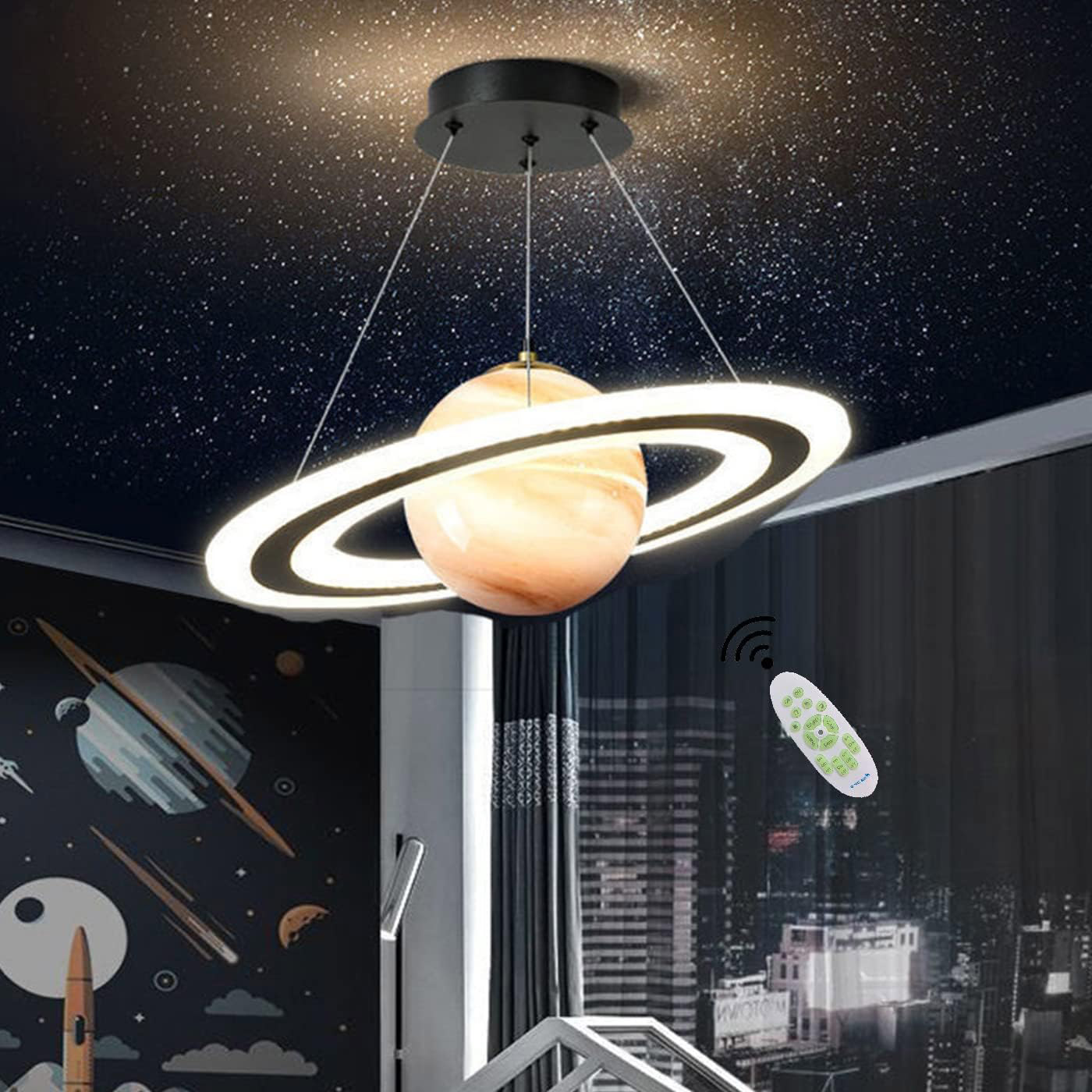 - Taille de lumière LED: ø45cm * H121cm – – 40W – – lumens: 3600lm – plage applicable: 10- 15m² (hauteur réglable), tension de fonctionnement: 220V. Ce plafonnier pour chambre d’enfants est le rêve de chaque garçon et, L’intégration du ciel étoilé et de la conception de l’éclairage, de la lumière romantique et de l’ombre s’élève comme une planète.