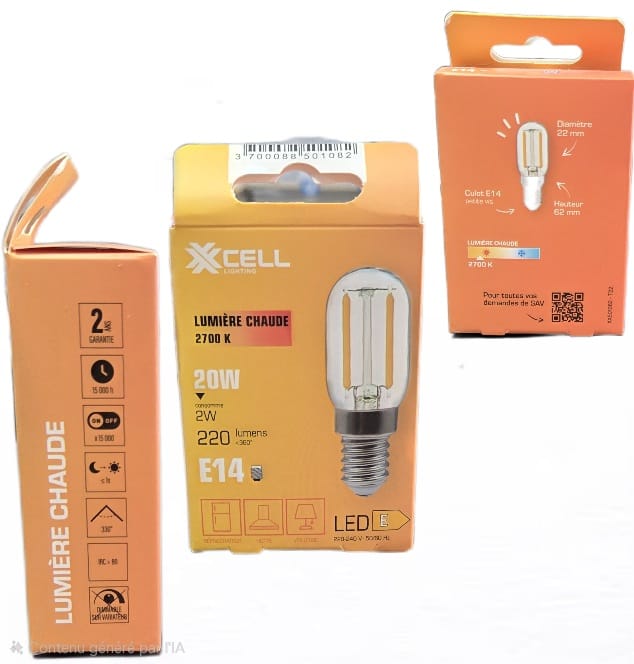 Type de produit : Ampoule spéciale réfrigérateur, hotte, veilleuse.