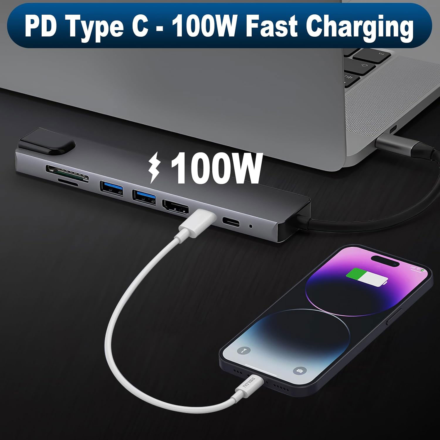 - Charge rapide PD 100 W : Le multiport Type-C prend en charge une charge rapide jusqu’à 100 W, permettant à votre appareil de rester chargé pendant son utilisation. Chargez votre ordinateur portable, votre tablette ou votre smartphone tout en transférant des données ou en utilisant un écran externe, le tout grâce à une connexion sécurisée et fiable