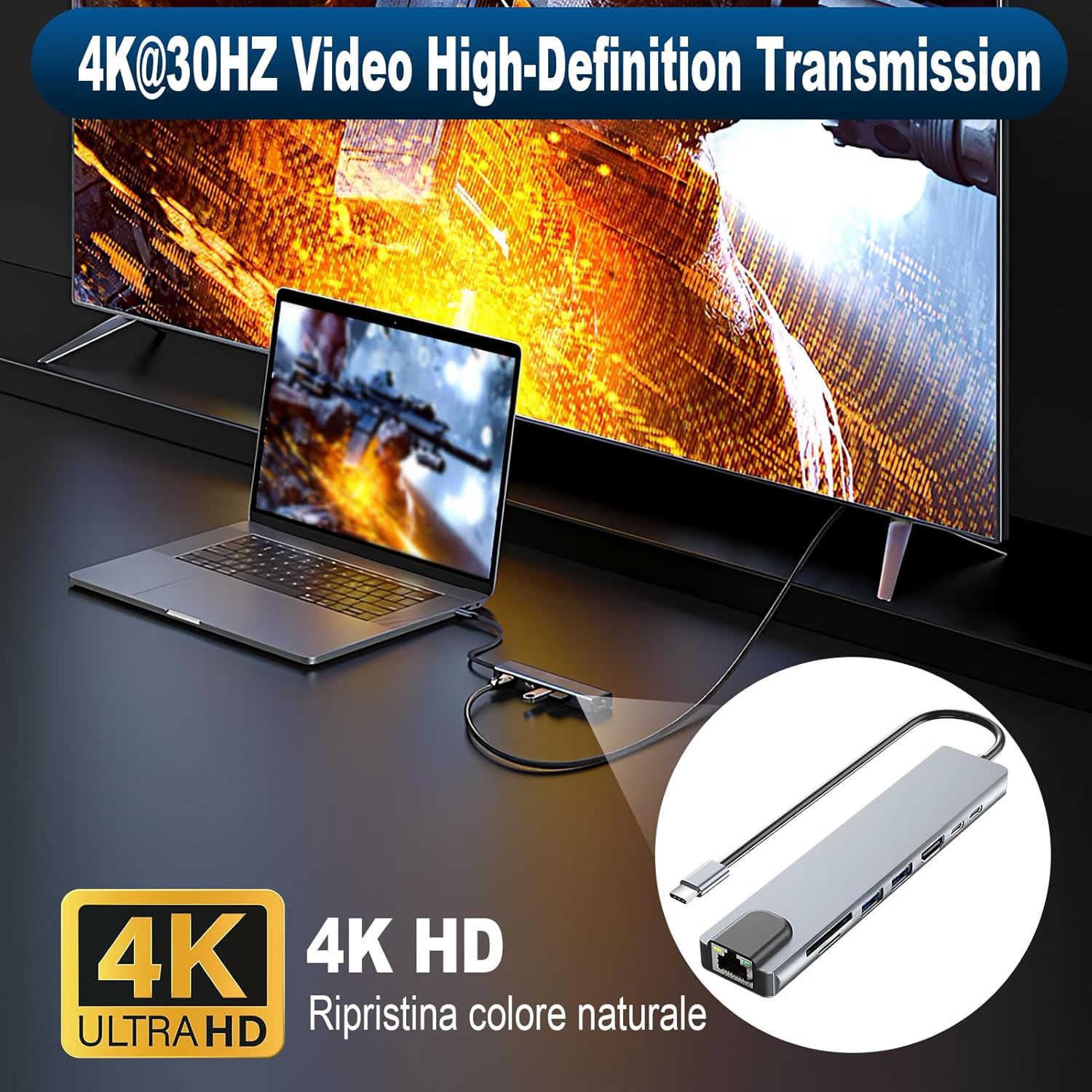 - Vidéo HDMI 4K : La station d’accueil Type-C connecte votre ordinateur portable à un écran ou un téléviseur HDMI 4K. Profitez d’images nettes et détaillées avec des résolutions allant jusqu’à 3840 x 2160 à 30 Hz. Elle prend également en charge des résolutions inférieures comme le Full HD 1080p pour répondre à divers besoins d’affichage