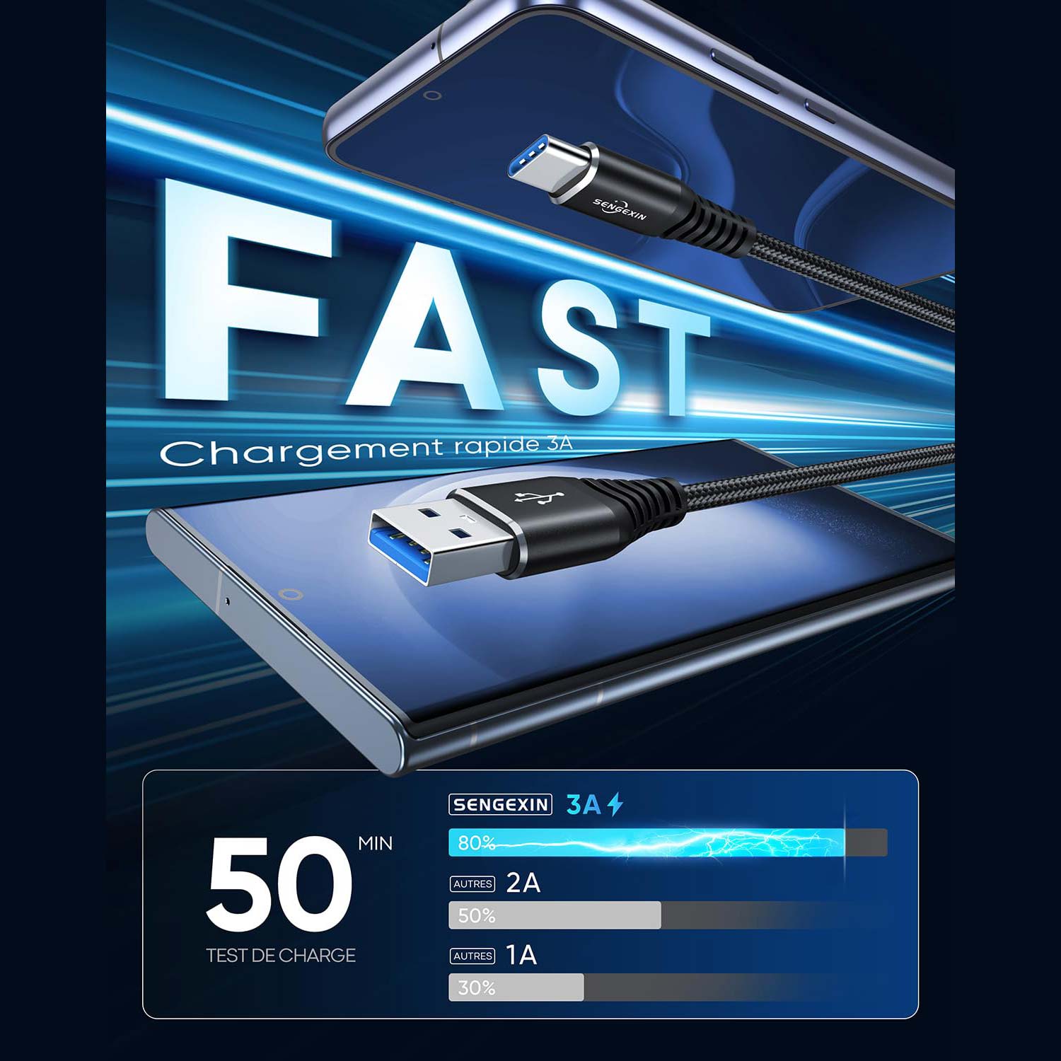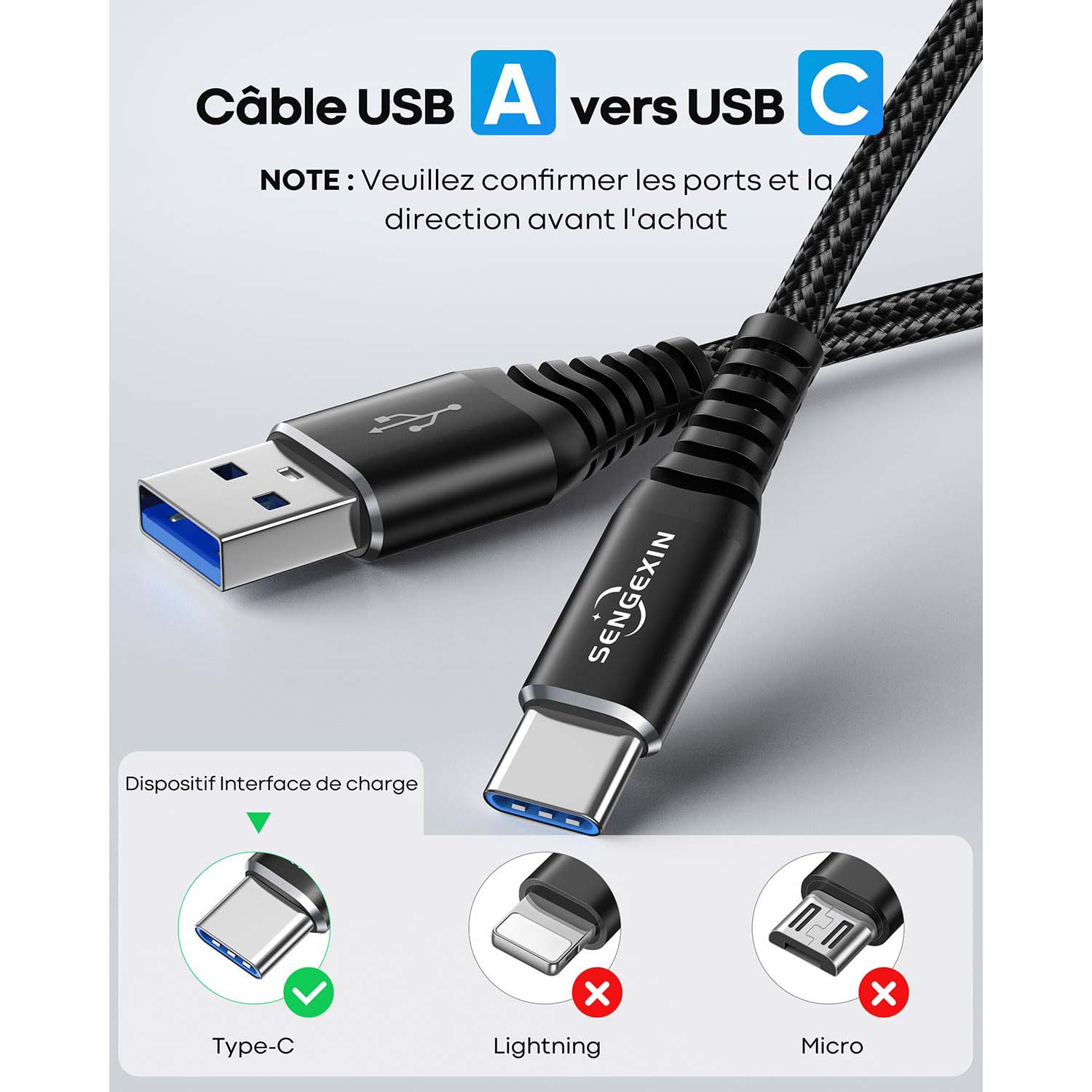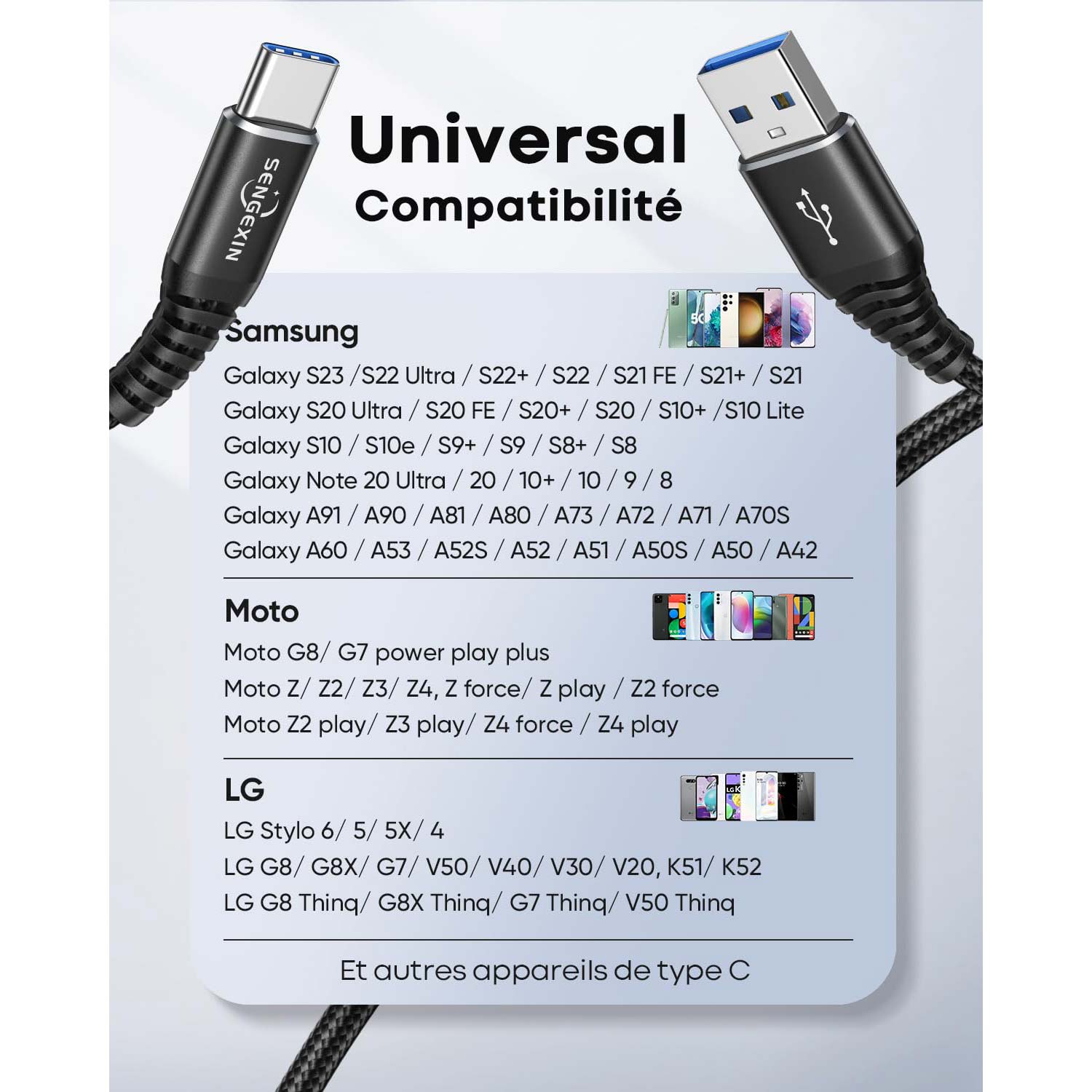 - ★ Câble USB de type C 1 m câble de charge USB C.